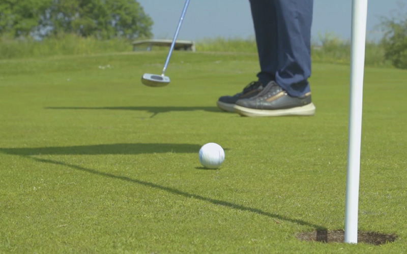 El calzado kybun también se puede usar perfectamente para jugar al golf.